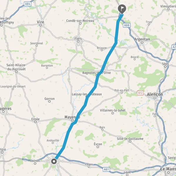 Au rond-point, prendre la 3ème sortie sur Route de Mayenne et continuer sur 600 mètres