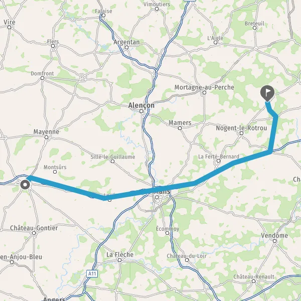 Prendre à gauche et rejoindre A11. Continuer sur 71 kilomètres
