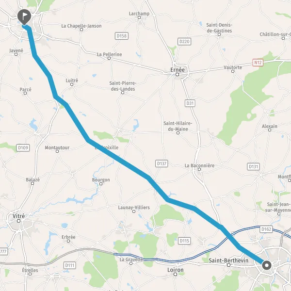 Continuer D30 (Route de Fougères) sur 11 kilomètres