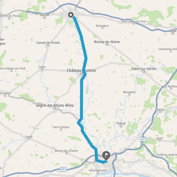 Au rond-point, prendre la 2ème sortie sur D962 (Route d'Angers) et continuer sur 18 kilomètres