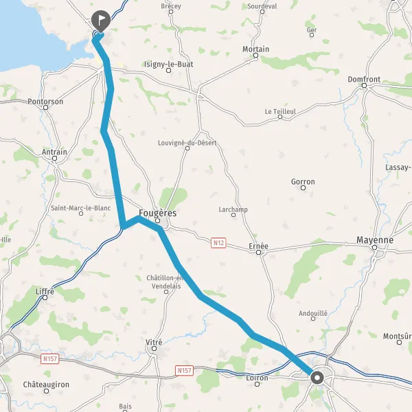Continuer D30 (Route de Fougères) sur 11 kilomètres