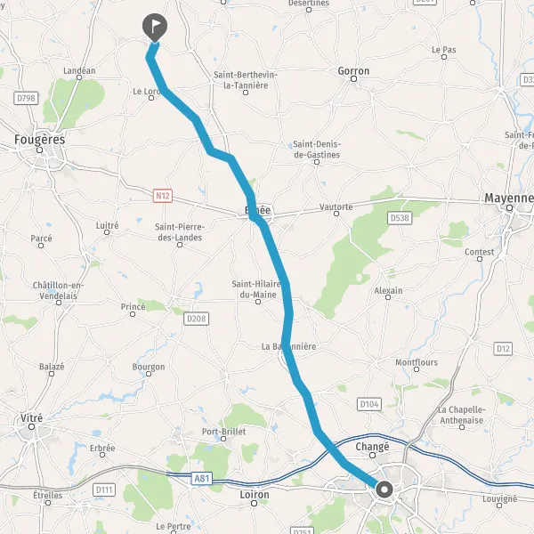Continuer Rue d'Ernée sur 2,6 kilomètres