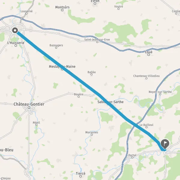 Au rond-point, prendre la 2ème sortie sur D21 (Rue de Sablé) et continuer sur 4,4 kilomètres