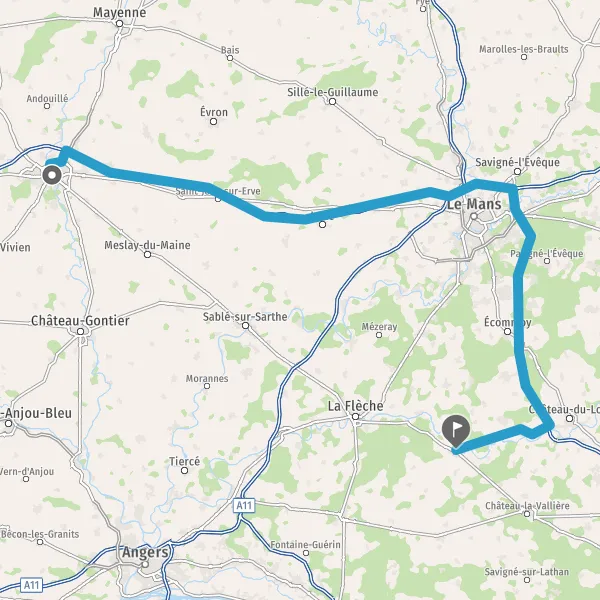 Au rond-point, prendre la 2ème sortie sur D21 (Rue de Sablé) et continuer sur 4,4 kilomètres