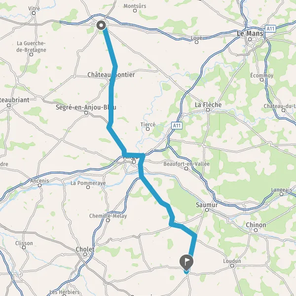 Prendre à droite et rejoindre A11 E60. Continuer sur 9,5 kilomètres