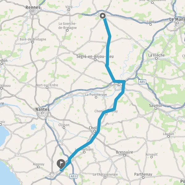 Prendre à gauche et rejoindre A83 E3. Continuer sur 2,3 kilomètres