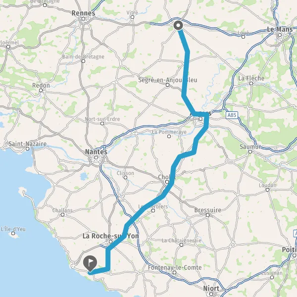Au rond-point, prendre la 2ème sortie sur D962 (Route d'Angers) et continuer sur 3,6 kilomètres