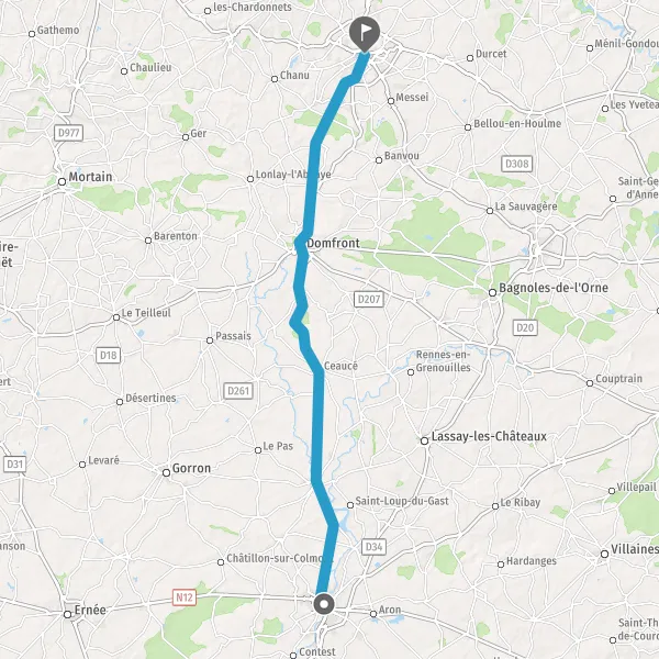 Tourner à droite sur D217 (Rue de Lonlay l'Abbaye) et continuer sur 7 kilomètres