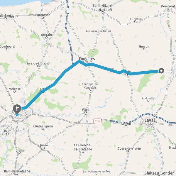 Prendre à gauche et rejoindre N136 E3 (N136). Continuer sur 8,4 kilomètres