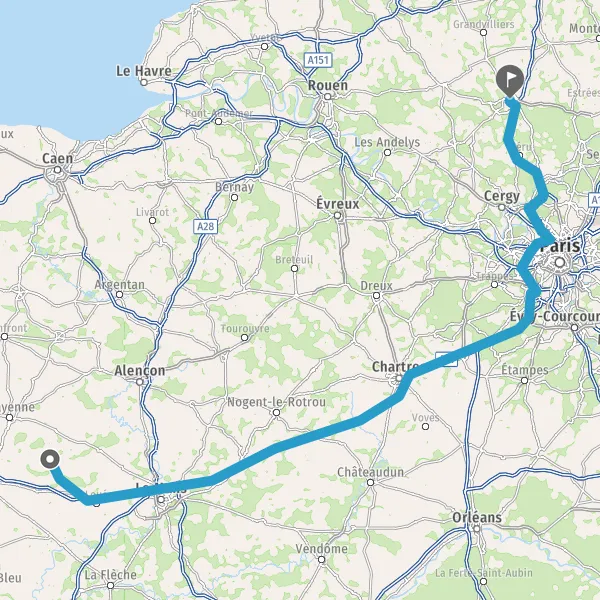 Prendre à gauche et rejoindre A11. Continuer sur 150 kilomètres