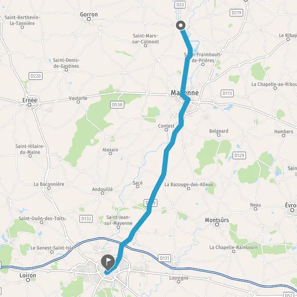 Au rond-point, prendre la 2ème sortie sur Route de Mayenne et continuer sur 650 mètres