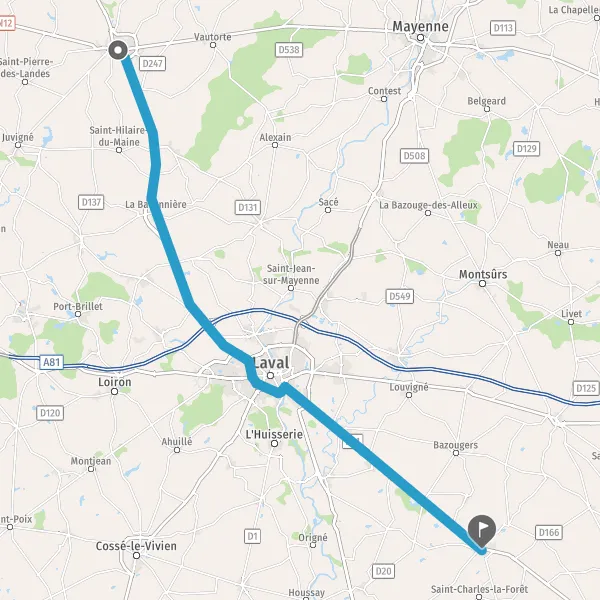 Au rond-point, prendre la 2ème sortie sur Route de Laval et continuer sur 350 mètres