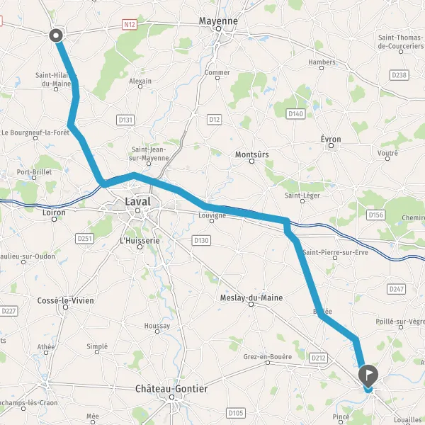 Au rond-point, prendre la 2ème sortie sur D21 (Rue de Laval) et continuer sur 1,5 kilomètre