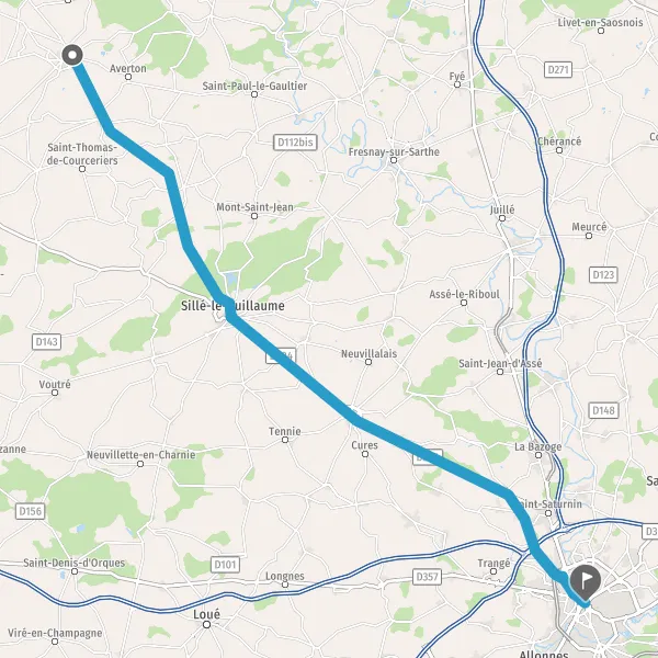 Au rond-point, prendre la 2ème sortie sur D304 (Rue du Mans) et continuer sur 2,7 kilomètres