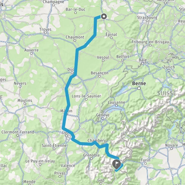 Prendre à droite et rejoindre E712 E70 (E70). Continuer sur 550 mètres