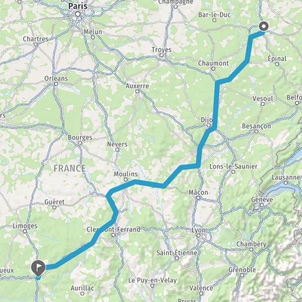 Prendre à droite et rejoindre A89 E70. Continuer sur 160 kilomètres