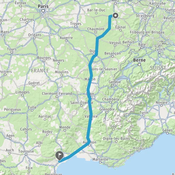 Continuer E15 (La Languedocienne) sur 72 kilomètres