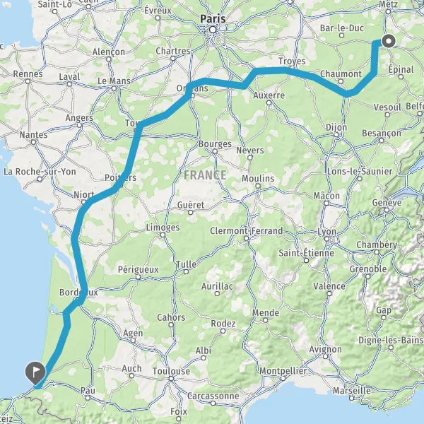 Prendre à droite et rejoindre A63 E70 E5. Continuer sur 165 kilomètres
