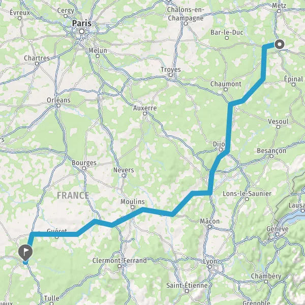 Prendre un ticket (Péage Molinet Est) Payer 1,30 € (Péage Molinet Ouest) Prendre un ticket (Péage Montbeugny Est) Payer 1,90 € (Péage Montbeugny Ouest) Prendre un ticket (Péage Le Montet Est) Payer 1,00 € (Péage Le Montet Ouest) Prendre un ticket (Péage Deux chaises) 311 km