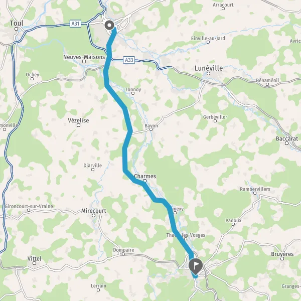 Au rond-point, prendre la 2ème sortie sur D157 (Rue d'Épinal) et continuer sur 2,1 kilomètres
