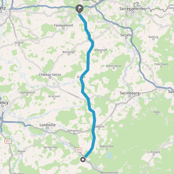 Tourner à gauche sur D999 (Route de Dieuze) et continuer sur 6,2 kilomètres