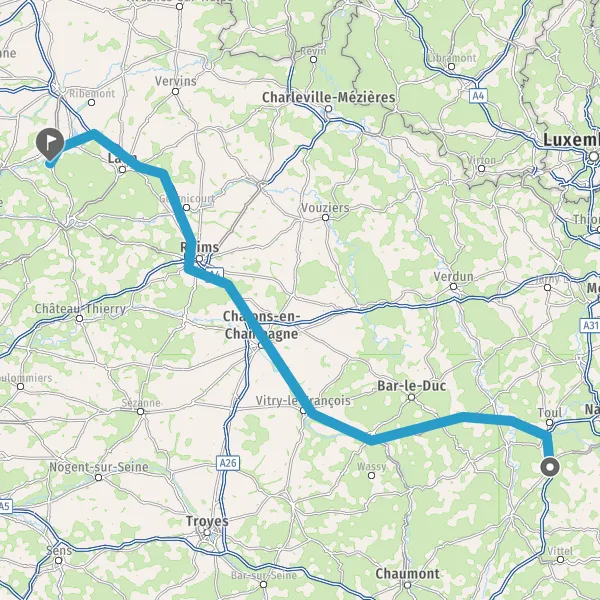 Prendre à droite et rejoindre A26. Continuer sur 69 kilomètres