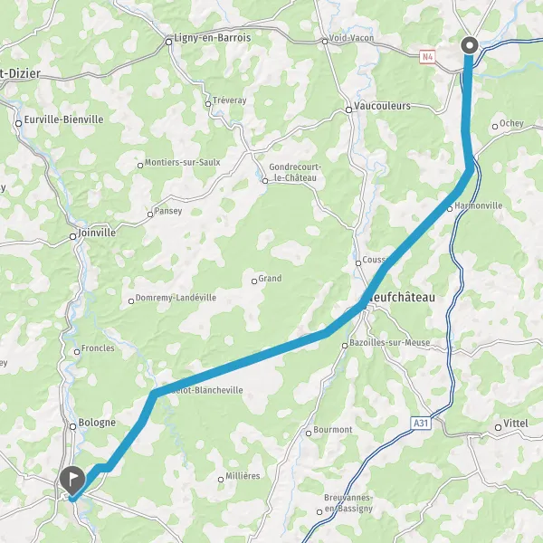 Tourner légèrement à gauche sur D674 (Avenue du Général Bigeard) et continuer sur 14 kilomètres