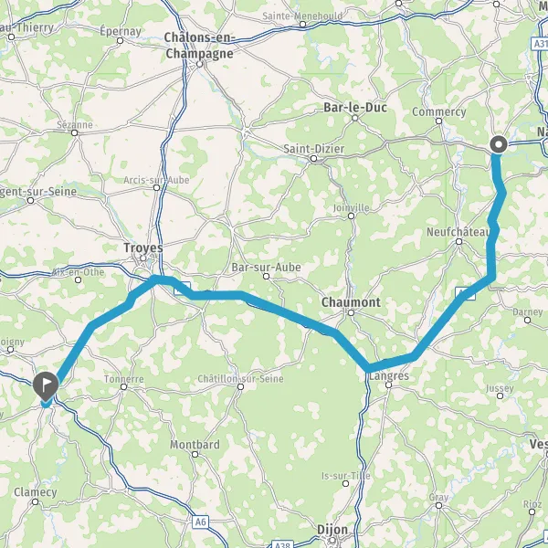 Prendre à droite et rejoindre A5. Continuer sur 95 kilomètres