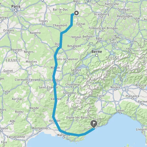 | Distance en voiture | 768 km à 879 km |