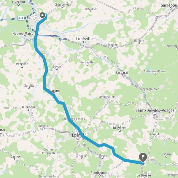 Au rond-point, prendre la 2ème sortie sur D417 (Route d'Épinal) et continuer sur 2,1 kilomètres