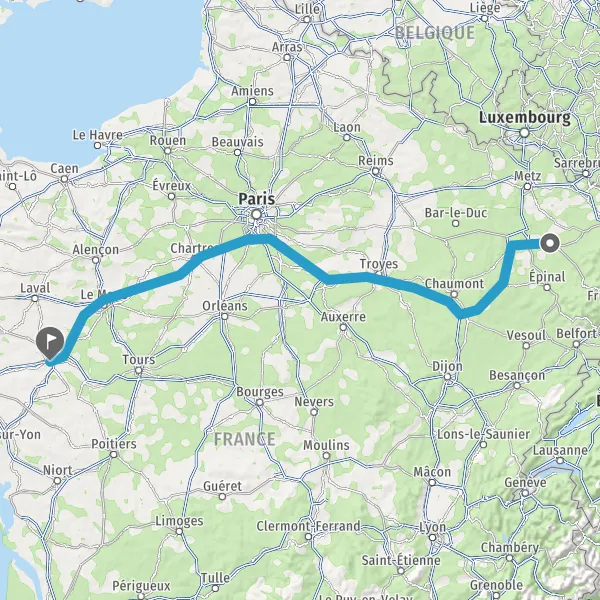 Prendre à droite et rejoindre A11 E50. Continuer sur 147 kilomètres