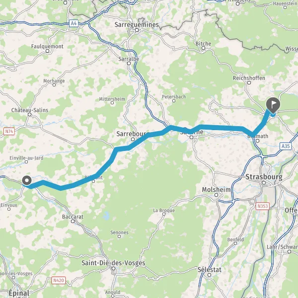 Tourner à gauche sur D400 (Rue de Sarrebourg) et continuer sur 800 mètres