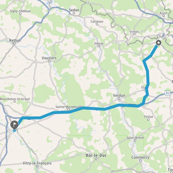 Prendre à droite et rejoindre A4 E50. Continuer sur 90 kilomètres