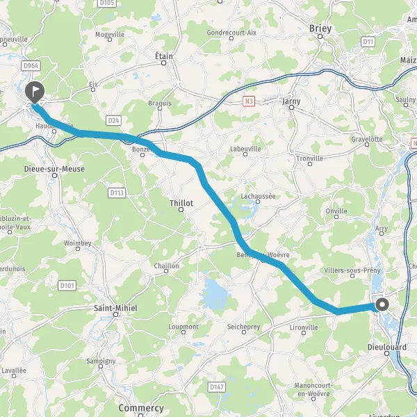 Au rond-point, prendre la 2ème sortie sur D904 (Route de Verdun) et continuer sur 21 kilomètres
