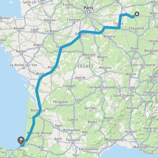 Prendre à droite et rejoindre A63. Continuer sur 183 kilomètres