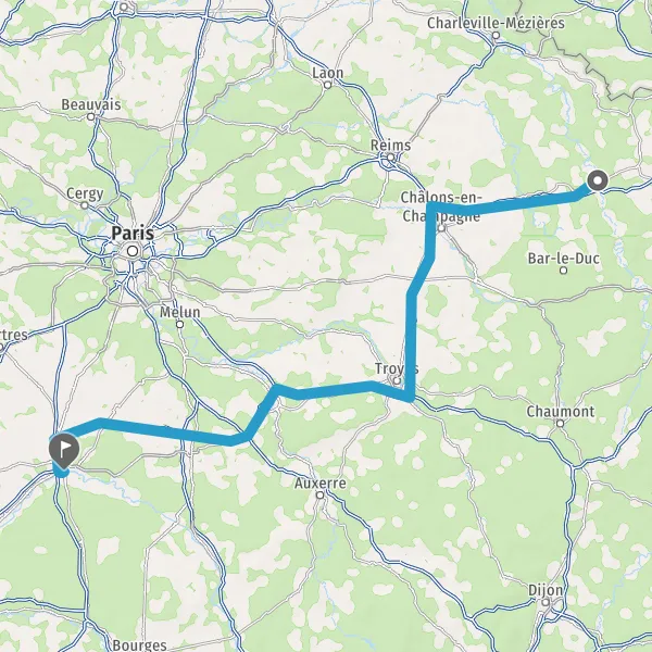 Prendre à droite et rejoindre A5. Continuer sur 69 kilomètres