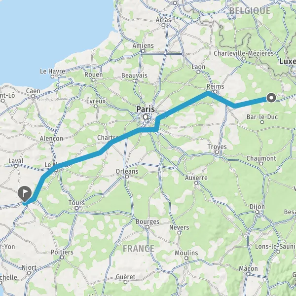 Prendre à droite et rejoindre A11 E50. Continuer sur 147 kilomètres