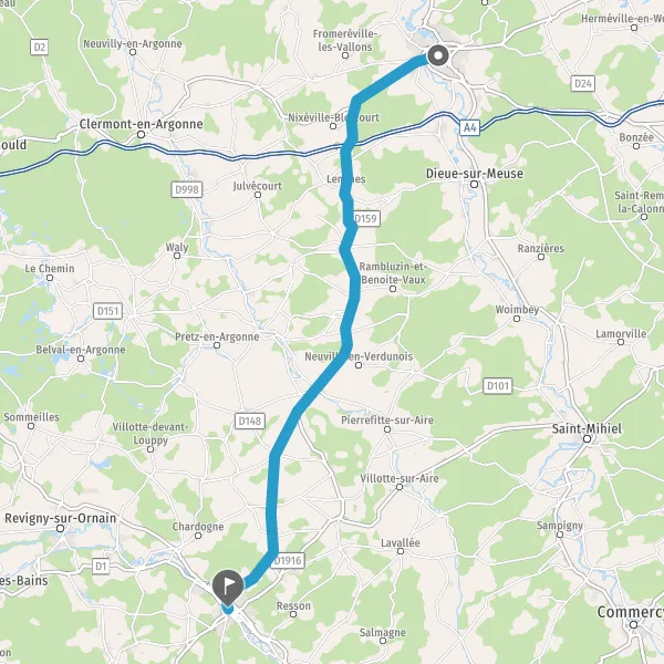 Continuer D1916 (Voie Sacrée) sur 23 kilomètres