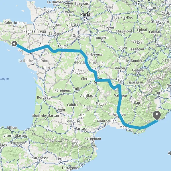 Prendre à droite et rejoindre A83. Continuer sur 150 kilomètres