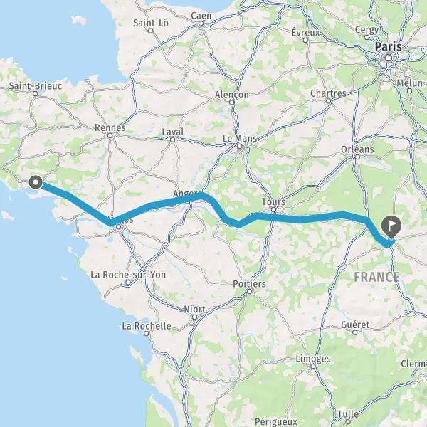 Prendre à droite et rejoindre A85. Continuer sur 205 kilomètres