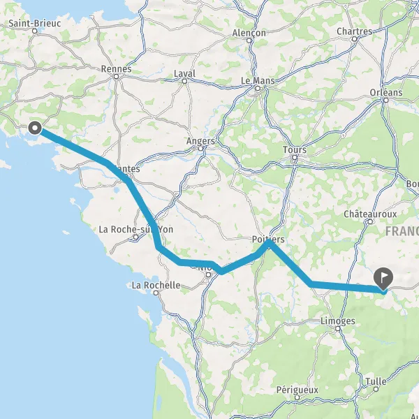 Prendre à droite et rejoindre A83. Continuer sur 150 kilomètres
