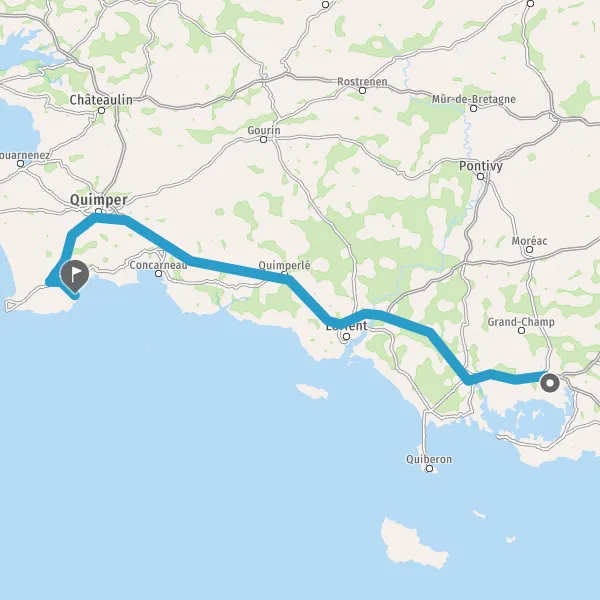 Au rond-point, prendre la 3ème sortie sur D785 (Route de Pluguffan) et continuer sur 14 kilomètres
