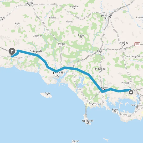 Prendre à droite et rejoindre N165 E60 (N165). Continuer sur 25 kilomètres