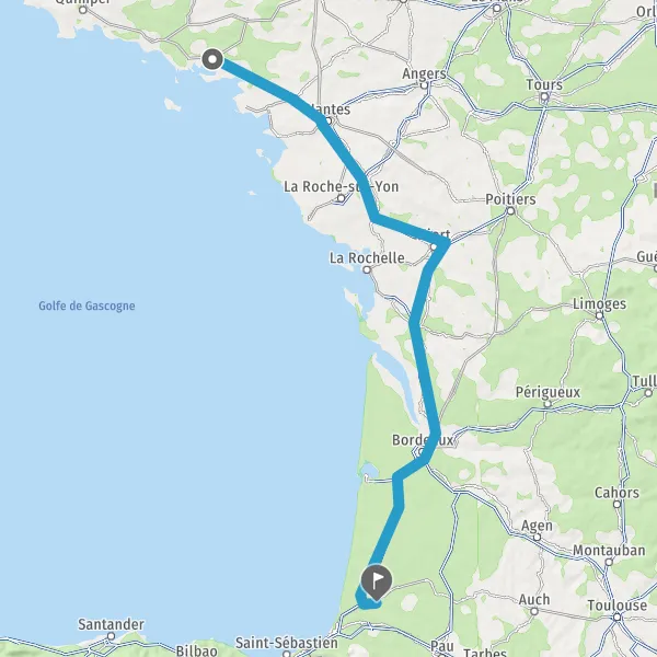 Trajet de Vannes (56000) à Dax (40100) en voiture