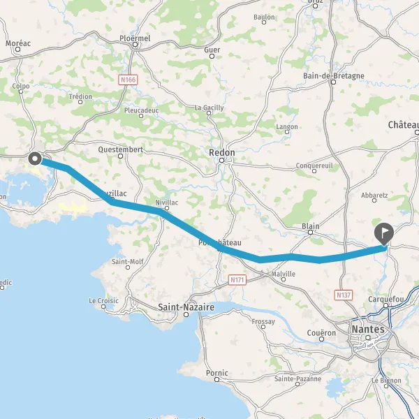 Prendre à droite et rejoindre N165 E60 (Voie Express Lorient-Nantes). Continuer sur 32 kilomètres