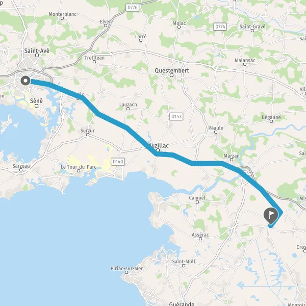 Prendre à droite et rejoindre N165 E60 (Voie Express Lorient-Nantes). Continuer sur 32 kilomètres