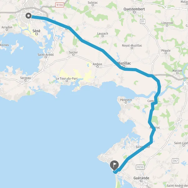 Prendre à droite et rejoindre N165 E60 (Voie Express Lorient-Nantes). Continuer sur 27 kilomètres