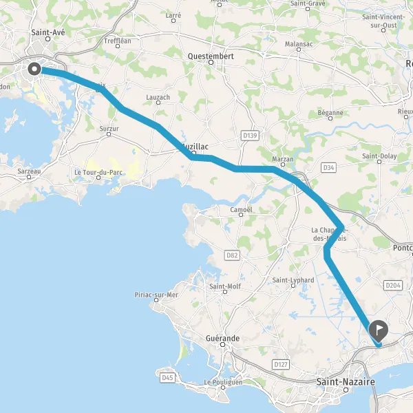 Prendre à droite et rejoindre N165 E60 (Voie Express Lorient-Nantes). Continuer sur 32 kilomètres