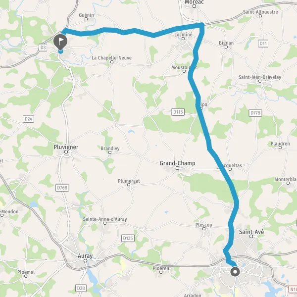 Au rond-point, prendre la 1ère sortie sur D768 (Rue d'Auray) et continuer sur 130 mètres