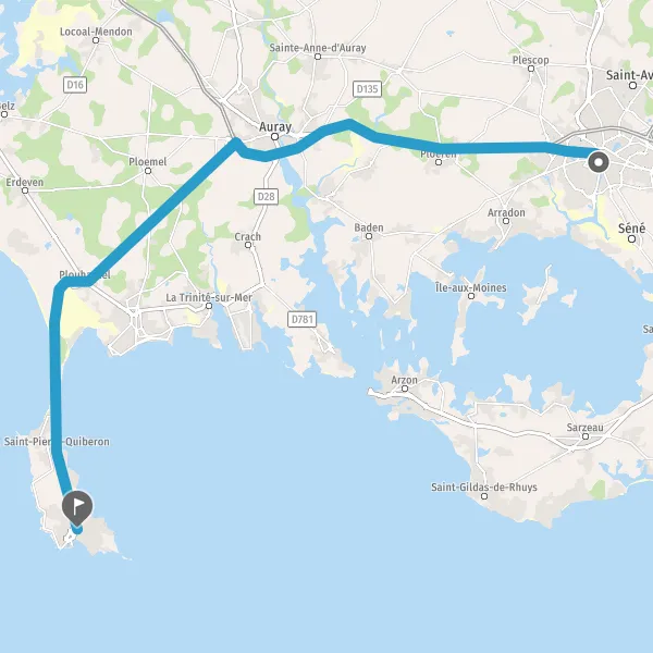 Tourner légèrement à droite sur D768 (Route de Quiberon) et continuer sur 2,1 kilomètres